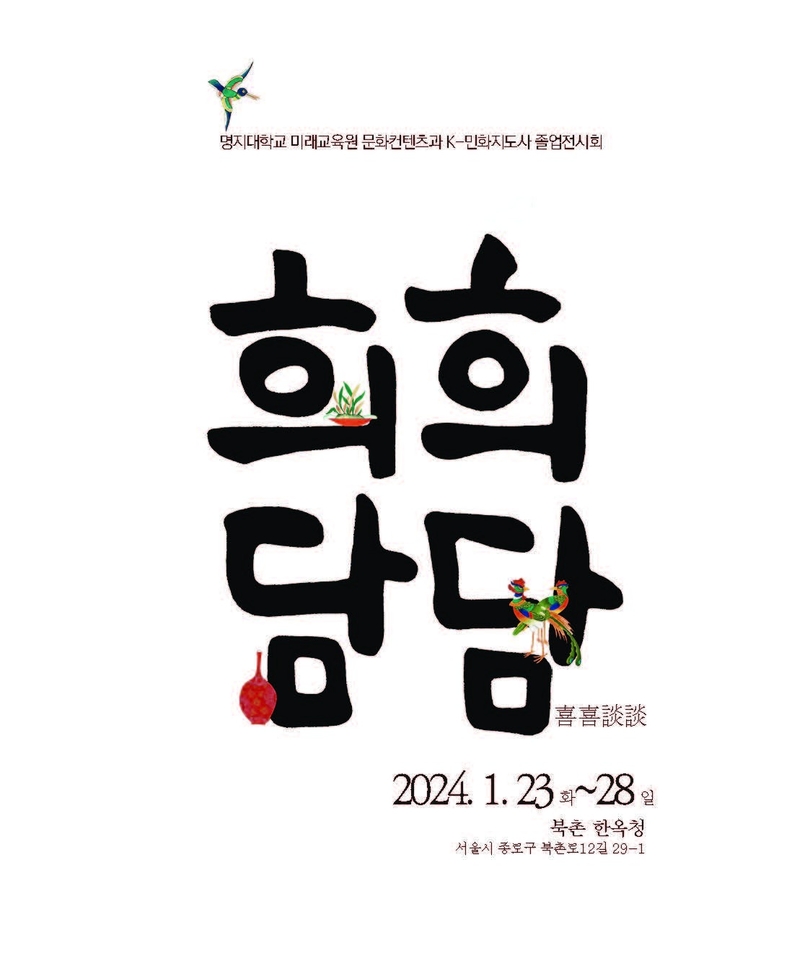 By Kayla Lee | Professor Lee Mi-hyung of the Department of Cultural Contents at Myeongji University's Future Education Center will hold a graduation exhibition of the first class of the K-Folk Painting Leader Course, "Hihidamdam (喜喜談談, Joy and story)," from Jan. 23 to 28 at Hanokcheong in Bukchon, Jongno-gu, Seoul.