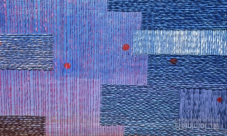 자연에의 본질적 귀향에 천착하는 작가 자신만의 특유한 구도자적 화풍은 한지의 색감을 살려, 보는 방향에 따라 다르게 보이게 하는 기법이다. 단조로울 것 같지만 지루하지 않은, 세련된 단색화 작업의 결실로, “ 파동과 색”은 대상에 자연의 파동성을 부여함에 이정표를 세우고, 그 대상을 한지 파편으로 입체화하고, 색채의 하모니로, 진동·변화하는 소리의 물결로, 그 엄연한 존재론적 본질을 표현한다.