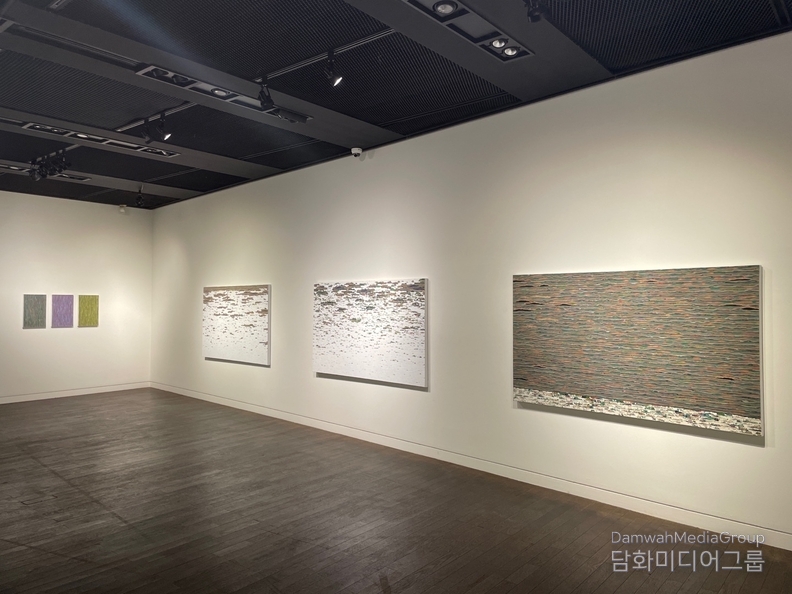 전통 재료인 색 한지에 현대적인 재료를 혼합하여 그려낸 선과 면들은 그 무엇에도 비교할 수 없을 만큼 자연스럽다.