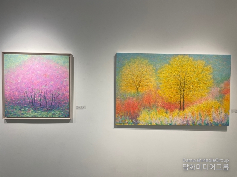 이성의 합리성을 넘어서는 자연은 숭고함으로 다가오고 그런 자연을 바라보고 이해하려는 관점에서 작가의 작업은 출발한다. 매 순간 가장 적절한 것을 찾아내고 목적이 없기에 매 순간 순간에 집중할 수 있다는 작가는 매 순간 부딪히는 한계를 해결해 가는 과정이고 그 과정 속에 깃들어 있는 찰나적 사유의 축적으로 승화되어 화면을 안온하게 담아내고 있다. 청아한 숨, 풍요의 순간, 사랑스러운 무늬 나무, 빛의 하모니의 작품 멍제처럼 작품은 수양의 방편이라 할 수 있는데 반복되는 붓 터치로 화면 위에 중첩되어 쌓여가는 사유의 흔적들이 아름다움과 작가의 미의 사유함이 담겨져 있다.