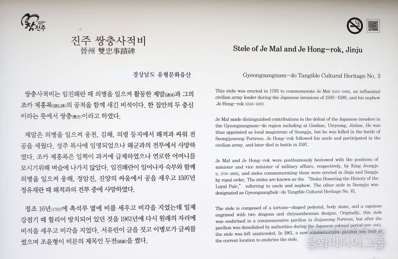 K-컬처 전득준 기자 | 이 단은 진주성의 임진대첩과 계사순의 때에 순절한 호국영령을 기리기 위하여 진주시민의 소망을 담아 문화공보부와 진주시가 세운 제단이다. 1986년 12월에 공사를 시작하여 1987년 12월에 마쳤다.
