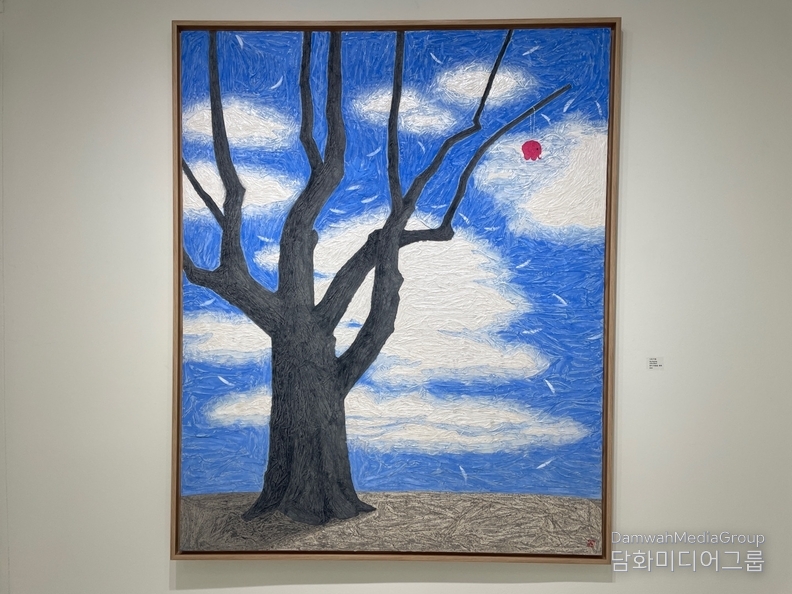 붓으로 그린 그림이라기보다는 손으로 빚어 붙인 그림/조각적인 이 물질적 회화 작업은 따라서 부득불 일정한 틀 안에서 정형화된 선을 따르지만 동시에 그것들을 흔들고 순화시키면서 좀더 자연스러운 선의 맛과 자연의 유기적이고 생성적이며 활기찬 맛 또한 부분적으로 흡입해낸다. 재료와 이미지가 대등한 차원에서 다가오는 것이다. 한편 이 작업은 입체적이면서도 원 근이 부재한 평면인 성격이 공존하고 조각이자 회화이며 한지/닥지 자체의 색채와 부분적으로 개입한, 색채의 협업에 의한 작업이다.