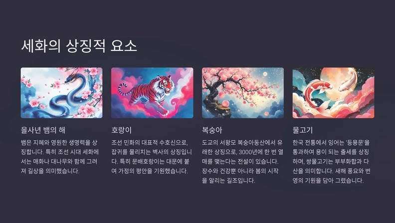 담화 K-민화 이존영 발행인은 “세화는 ‘벽사초복辟邪招福’ 즉, 악을 물리치고 복을 기원하는 전통적인 그림으로, 이번 전시를 통해 한국의 K-민화를 세계에 널리 알리고 국제 교류를 강화하고자 한다”고 전했다. 또한 주한 외국 대사관과 협력하여 K-민화를 매개로 한 국제 교류전을 꾸준히 이어갈 계획을 밝혔다.