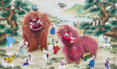 K-컬처 이길주 기자 | 김선예 작가의 탄탄대로 얼쑤!는 이름 그대로 새해의 희망과 축복이 한 폭에 터져 나오는 세화歲畵이다. 화면 가득 펼쳐진 붉은색·분홍색의 북청사자놀음은 전통의 흥겨움 속에서 우리 민족의 기운氣運과 염원念願을 상징적으로 드러낸다. 두 마리 사자는 해학과 생명력을 품은 표정으로 화면을 주도하며, 사자춤을 추는 인물들과 관람객의 시선을 자연스레 축제의 중심으로 끌어당긴다. 그들이 걸어가는 길은 작가가 제목에 담은 대로 ‘탄탄대로坦坦大路’의 앞날이 평탄하기를 기원하는 길이다. 작품 속 인물 하나하나가 지닌 자세와 표정, 휘날리는 천과 흩날리는 꽃잎은 설날의 들뜬 마음, 잘되기를 바라는 기원, 그리고 모든 날이 축제가 되길 바라는 소망을 색채와 움직임으로 펼쳐낸다. 화면 위로 날아오르는 나비와 아이는 풍요와 재복을 상징하며, 사자의 등 위에서 환히 웃는 아이는 “새해에는 웃음이 절로 피어나길” 바라는 작가의 마음을 대변한다. 또한 전통 민화 특유의 평면적 구도 안에서 작가는 섬세한 필치와 현대적 감각을 더해, 옛 형식이 단순한 복고가 아닌 살아 있는 K-민화의 현재성으로 확장될 수 있음을 보여주었다. 특히 사자의 털 표현은 색채의 농담과 결의
