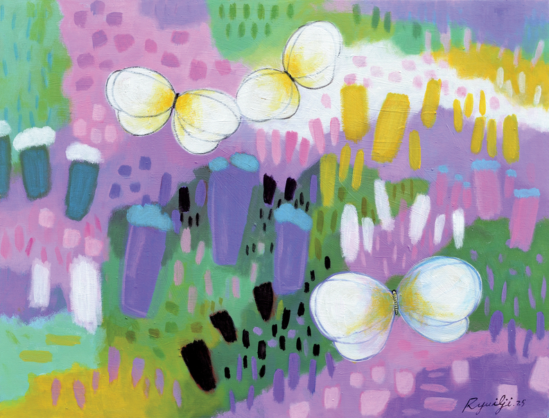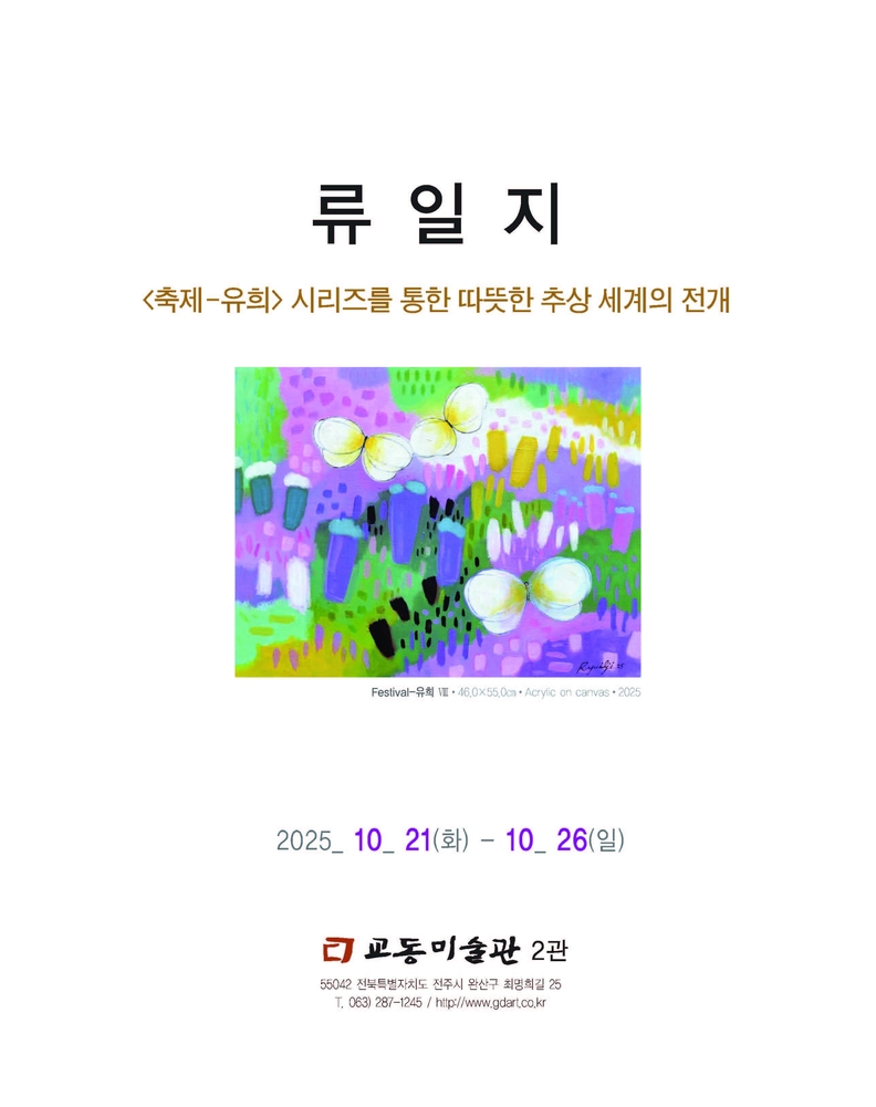 류일지 작가의 ‘축제–유희’ 시리즈는 단순한 시각적 아름다움을 넘어, 현대인의 마음속 깊은 곳에서 잊혀져가는 “삶의 따뜻한 온기와 유희의 순간”을 일깨운다. 그의 화폭 속 색과 리듬, 나비의 비상은 우리 모두에게 조용한 축제로 다가온다.