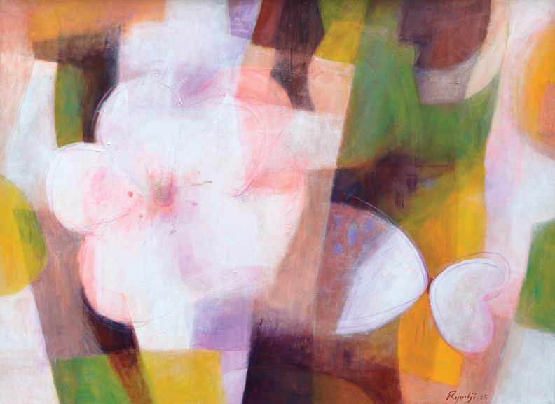 작가는 일상 속에서 포착한 꽃들의 생명력과 나비의 자유로운 움직임을 기하학적 구조와 따뜻한 색채, 유희적 리듬으로 재구성하며, 현실과 꿈의 경계를 넘나드는 추상적 세계를 펼쳐낸다.