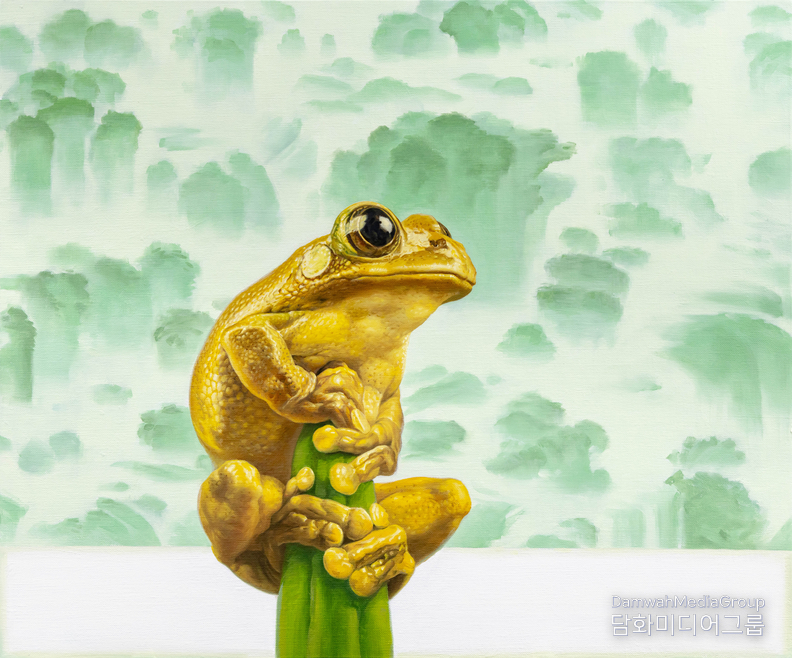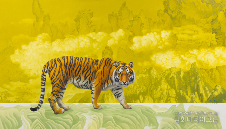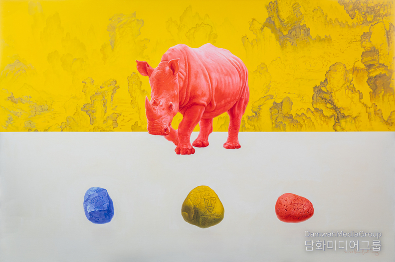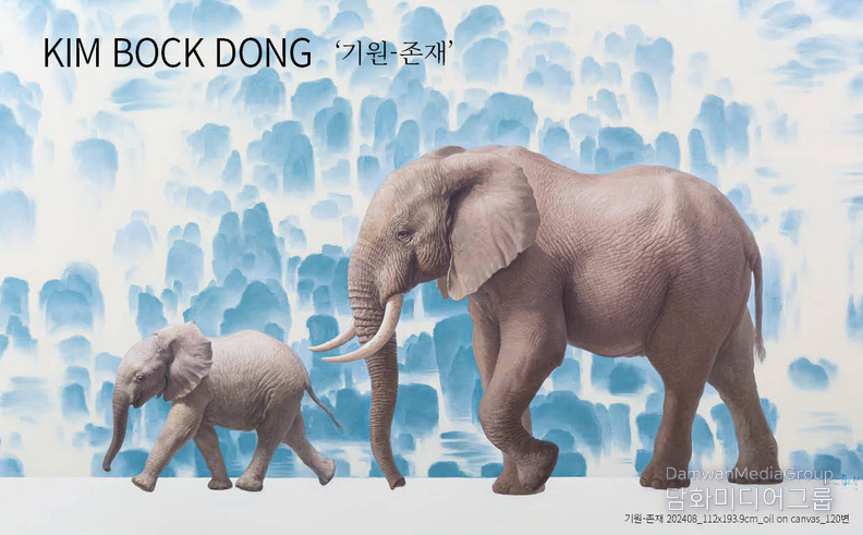 특히<기원–존재>2024_코끼리 연작은 몽환적인 수묵의 산수 배경 위에 코끼리 모자가 나란히 걷는 장면을 통해 “사라져가는 생명에 대한 기도이자 존재의 증언”을 표현했다. 작가의 작품은 단순한 재현을 넘어, 존재의 유한성과 생명의 윤리적 존엄을 묻는다.