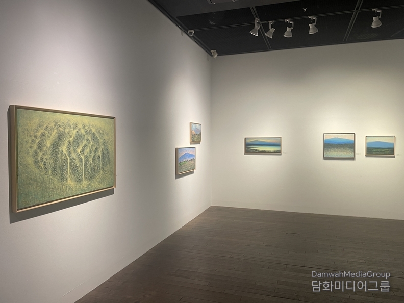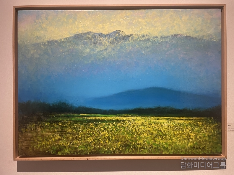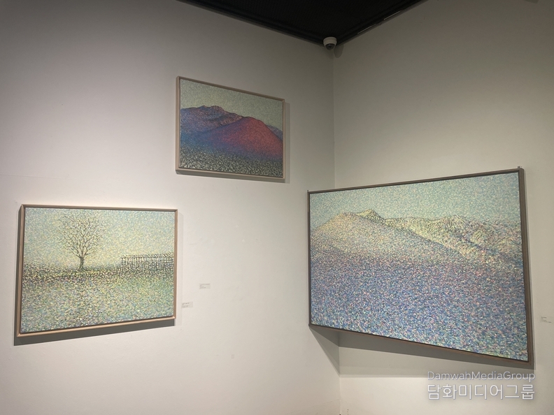 한라산과 바다,해변과 마을의 풍경은 수많은 색점의 중첩을 통해 시간의 흐름과 감정의 떨림으로 확장되며, 관람자에게 자연과 호흡하는 경험을 경험하게 하고 있다. 작가는 “자연의 호흡과 생명의 시간성, 끊임없이 생성과 소멸을 반복하는 자연의 생명력과 기적 질서, 눈에 보이지 않는 생명의 리듬을 회화로 표현한다.‘고 한다.