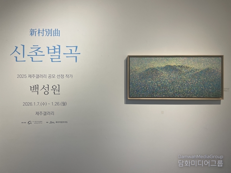 K-컬처 전득준 기자 | 제주의 빛과 공기, 바람과 물결이 만들어내는 자연의 리듬을 색과 점의 진동으로 풀어낸 회화, 2025 제주갤러리 공모 선정 작가 백성원 ‘신촌별곡’ 전시가 제주갤러리(서울 종로구 인사동길41-1인사아트센터B1)에서 1월 26일까지 열리고 있다.