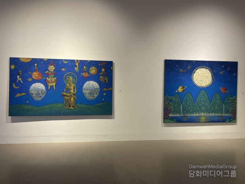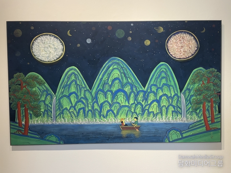 이번 전시에서는 전통적인 재료와 기법을 바탕으로, 이를 오늘의 시선에서 어떻게 바라볼 수 있을지를 민화와 불화에서 사용되는 소재와 표현 방식을 작가만의 감각으로 재해석하며, 고봉밥에 담긴 의미를 화면에 옮기고 있다.
