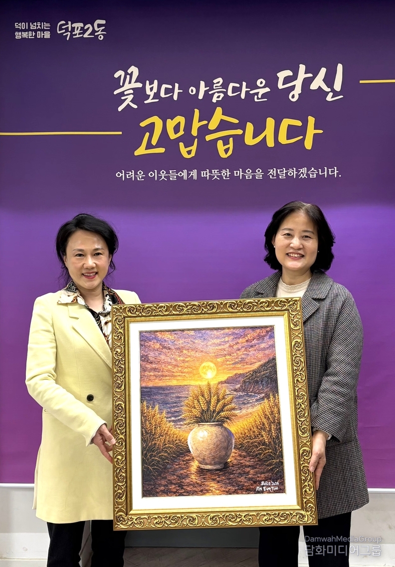 김성미 덕포2동장은 “이번 기증을 계기로 행정복지센터가 단순한 민원 처리 공간을 넘어, 주민의 삶에 문화적 감수성을 더하는 열린 생활문화 공간으로 자리매김할 것”이라며 “지역사회에 따뜻한 나눔을 실천해주신 김은진 작가께 깊이 감사드린다”고 밝혔다.