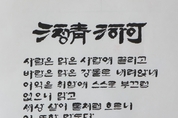 K-컬처 강경희 기자 | 이 k-그라피 작품의 첫 문장은 선언에 가깝다. 「청하淸河를 읽다. 」, 맑음은 가능하다는 말이다. 그러나 성파 작가는 여기서 멈추지 않는다. 이 가능성은 조건이 아니라 태도이며, 세상과 관계 맺는 하나의 방식임을 글과 획으로 증명해 보인다. “사람은 맑은 사람에게 끌리고, 바람은 맑은 강물로 내려온다.” 작품 속 이 문장은 미문美文이기 이전에 삶의 법칙처럼 읽힌다. 계산과 소음이 가득한 시대일수록, 사람은 더욱 맑은 곳을 향해 이동한다. 권력이나 요란한 언어가 아니라, 스스로 흐르며 낮아지는 존재에게 마음은 끌린다. 성파의 글씨는 바로 그 ‘낮아짐의 힘’을 품고 있다. 이어서 작가는 말한다. “이익을 취함에 스스로 부끄럼 없으니 맑고 세상살이 물처럼 흐르니 이 또한 맑도다.” 여기서 ‘맑음’은 도덕적 완벽을 뜻하지 않는다. 오히려 부끄러움을 아는 감각, 그리고 집착하지 않고 흘러가는 태도가 맑음을 만든다고 말한다. 이 문장은 오늘의 사회를 향한 조용하지만 분명한 질문이다. 우리는 무엇을 취하면서도 부끄럽지 않은가. 우리는 어디까지 흐를 준비가 되어 있는가. 하단에 병기된 한문 구절은 작품의 정신을 더욱 단단히 붙든다. 人濁爲引以淸心