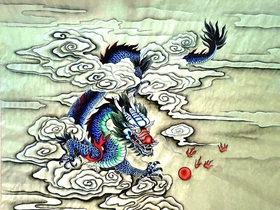 K-컬처 이길주 기자 | 이 작품은 감상을 요구하지 않는다. 대신, 마주함을 요구한다. 무속인 아랑이 그려낸 이 푸른 용은 장식적 상징도, 길상의 도상도 아니다. 이는 부름에 응답해 나타난 존재, 다시 말해 주술적 호출의 결과물이다. 작품 속 용은 고요하지 않다. 구름을 가르며 출현한 푸른 비늘의 몸체는 상승의 형상을 띠고 있지만, 그 움직임에는 긴장과 각성이 동시에 흐른다. 전통 회화에서 용은 왕권과 복을 상징했으나, 아랑의 용은 그보다 훨씬 원초적이다. 이 용은 복을 주는 존재가 아니라, 질서를 흔들고 기운을 전환하는 존재다. 특히 눈에 띄는 것은 용의 시선이다. 정면을 응시하지 않고, 붉은 구슬을 향해 몸을 틀고 있다. 이 구슬은 흔히 여의주로 해석되지만, 아랑의 세계관에서는 단순한 소망의 상징이 아니다. 그것은 집중된 기운의 핵, 혹은 인간과 세계를 잇는 매개체에 가깝다. 구슬 주위로 흩어지는 붉은 기운은 축복이 아니라 경고처럼 읽힌다. 다루지 못한 힘은 곧 화火가 된다는 무속적 인식이 그대로 드러난다. 구름 또한 중요하다. 이 작품에서 구름은 배경이 아니라 장막이다. 보이지 않는 세계와 보이는 세계 사이를 가르는 경계이자, 신령이 드나드는 통로다.