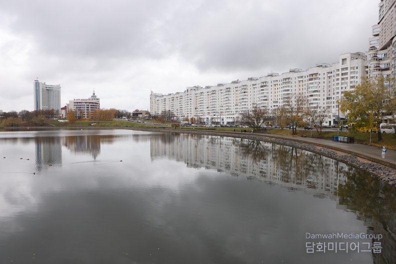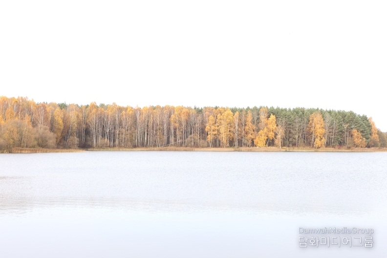 행사를 마치고 귀국 비행기에 오르며, 창밖으로 보이는 호수 위의 단풍, 하늘과 바다가 맞닿는 수평선, 그리고 벨라루스의 석양과 한국의 새벽빛이 이어지는 듯한 풍경이 시의 모티브가 되었습니다.