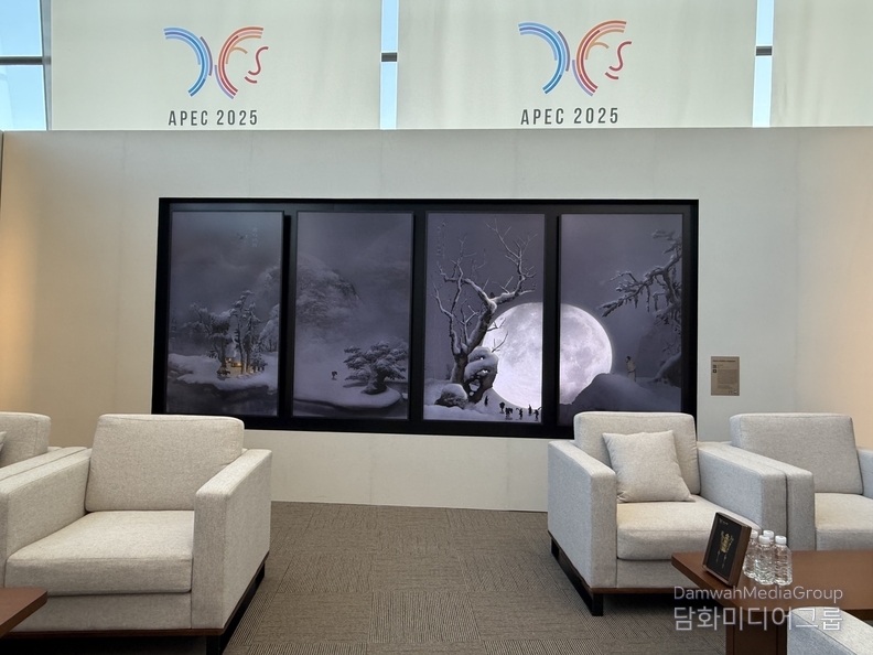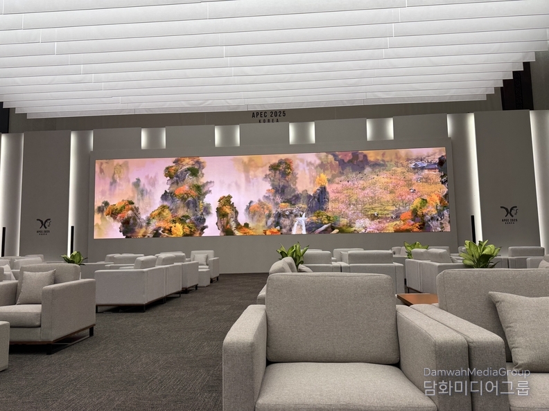 HICO 3층 정상회의장 라운지에는 가로 15m, 세로 4m 규모의 대형 미디어아트 월이 설치되어 APEC 21개국 정상을 맞이했다. 이이남 작가의 대표작 〈몽유도원도〉, 〈금강 내산〉, 〈묵죽도〉가 전통 회화의 미학과 AI 영상 기술을 결합해 ‘협력’과 ‘명상’의 미학을 시각화했다. 이 작가는 인터뷰에서 “예술은 언어를 초월한 외교의 매개체이며, 기술이 감성을 품을 때 국경을 넘어선 공감이 시작된다”고 전했다.