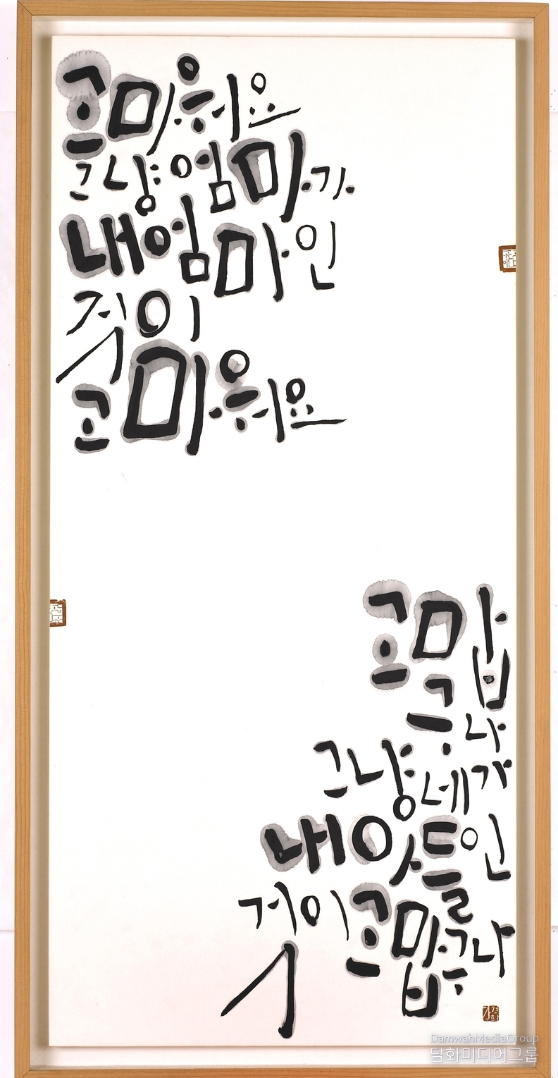 특히 이번 작품에서 돋보이는 것은 ‘고마움’이라는 단어가 지닌 정서적 무게다. 작가는 “그냥 엄마니까”, “그냥 네가 있어서”라는 일상의 고백을 조형 언어로 번역해, 가장 단순한 문장이 가장 깊은 감정을 품고 있다는 사실을 다시 일깨운다. 이는 단순한 캘리그라피가 아니라, 감정의 결을 섬세하게 시각화한 감성 회화에 가깝다.