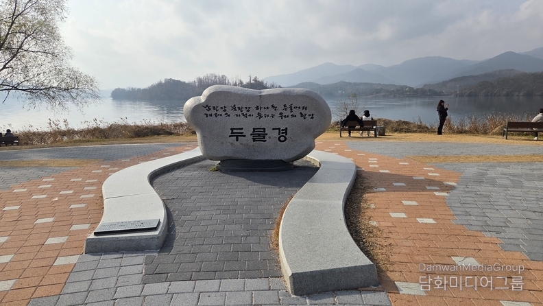 두 번째 사진에 등장하는 ‘두물경’ 표석은 두물머리라는 지명이 단순한 지역 명칭이 아니라 ‘두 물이 경계 없이 하나로 이어지는 자리’라는 철학적 의미를 품고 있음을 알려준다. 표석 뒤편으로 펼쳐진 강물은 잔잔하고, 겨울 구름은 흐릿한 빛으로 풍경을 덮으며 시간을 더 느리게 흐르게 한다.