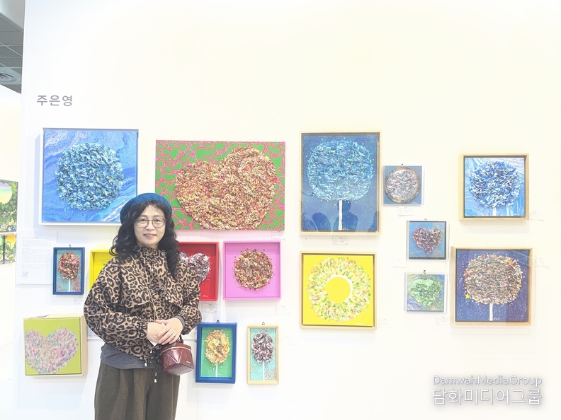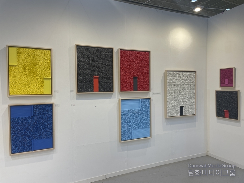 부스131에서는 화면의 전경(Foreground)과 배경(Background)을 명확히 분리하면서도 유기적인 연결성을 유지하며 불규칙하게 배치되어 비대칭적 구성으로 역동성을 강조한 주은영 작가와 국내에 레진아트 및 플루이드아트 장르의 개척자로 레진을 사용한 플루이드 아트를 통해 평면의 그림에 '부감'으로한 특유의 투명성으로 물감이 낼 수 없는 다양한 색채감으로 커다란 호평을 받고 있는 이지연작가의 작품을 살펴 볼 수가 있다.