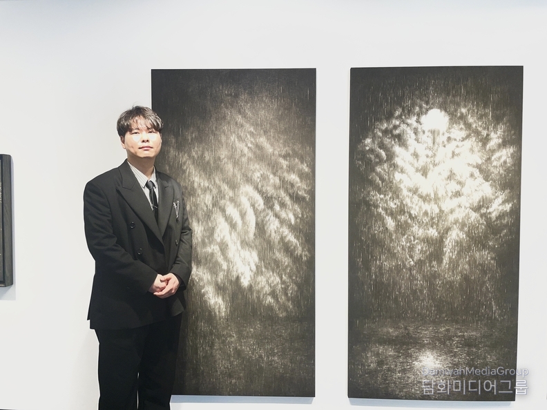 전시 제목 ‘깊은 밤 메어리’는 복잡한 사회 관계망 속에서 자기 스스로 빛을 발아하는 현상을 예술적 감성으로 승화했다. 수묵을 재료로 빛이 흘러나오거나 비집고 새어 나오는 사실성을 시각화한 게 이채롭다.실제로 그의 작품은 이 특징이다. 관조적인 수묵산수화가 아니라 생생한 밤 풍경의 현장감을 담은 현대적 산수화로 평가받는 이유도 여기에 있다.